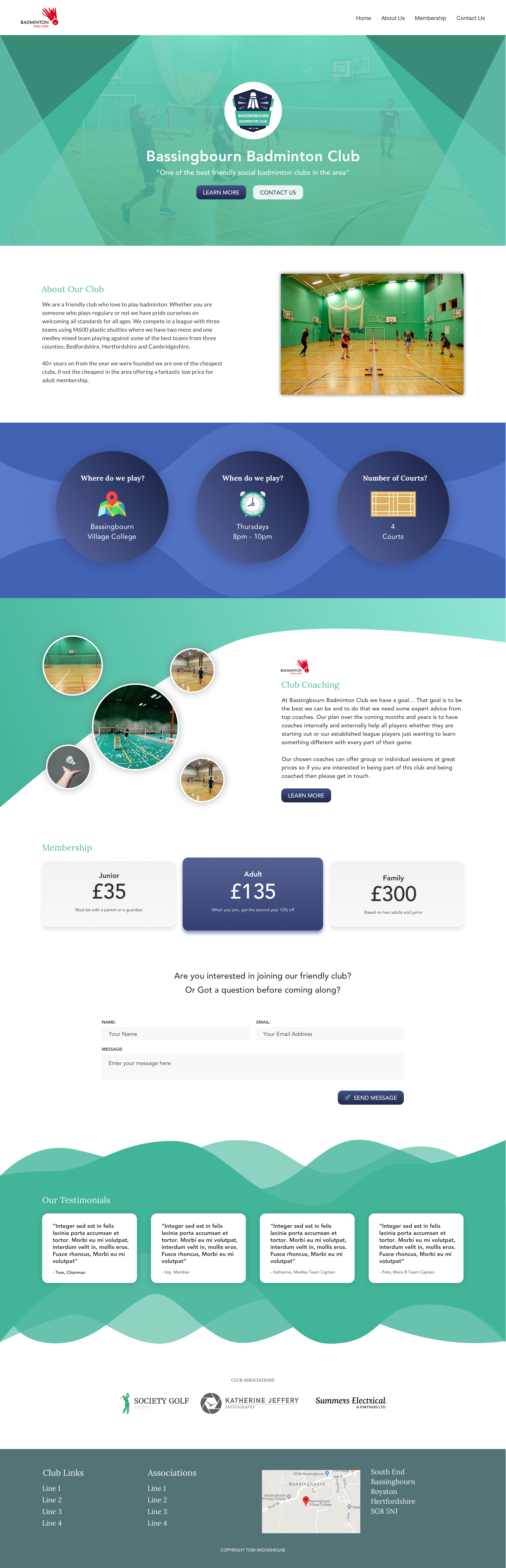 My local badminton club approached me to create a simple one page front end website with the thought of potentially taking it to a multipage website in the future. The club needed to display key information about the club including; start times, costs and what the club can offer.
