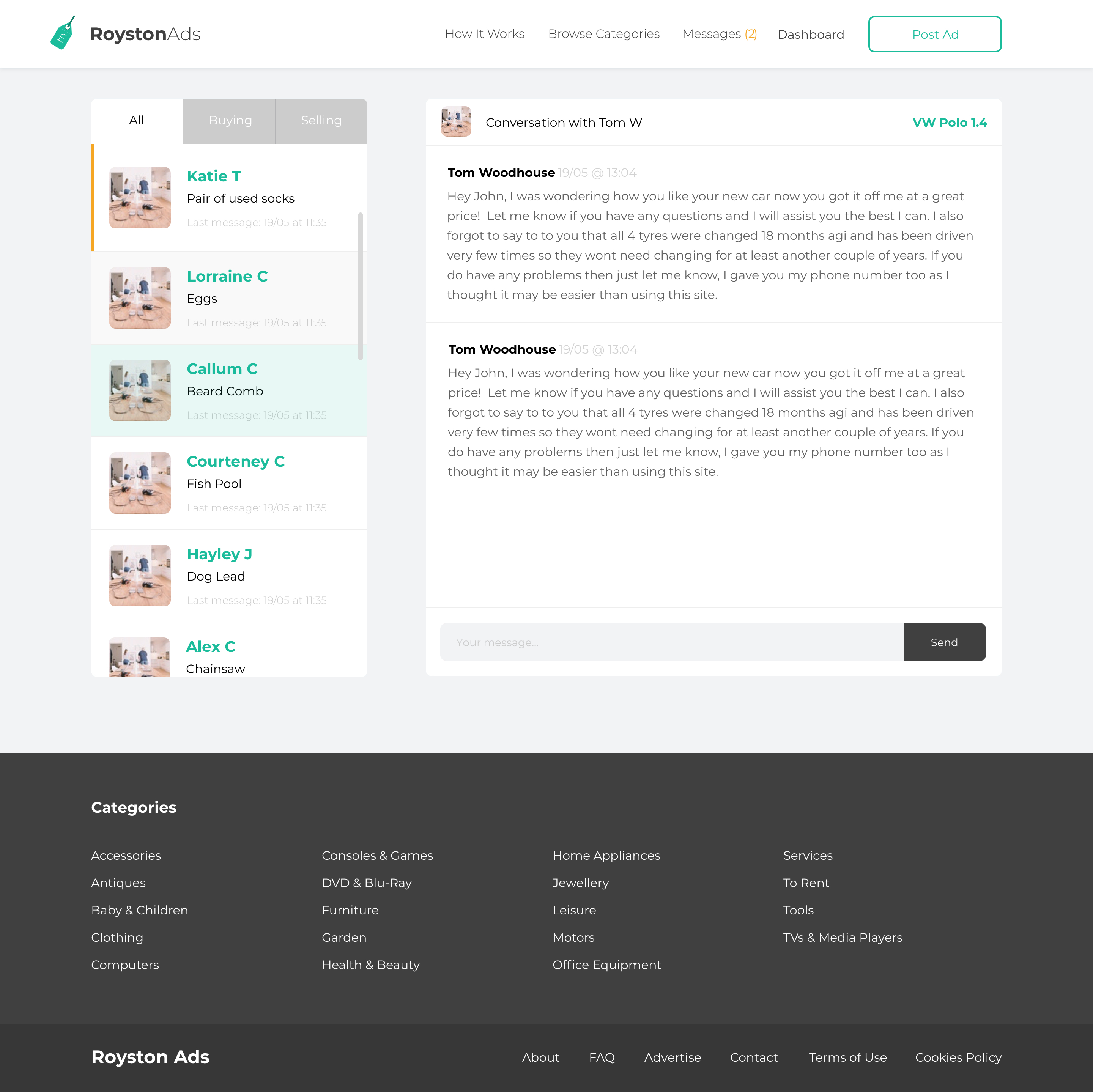 Royston Ads was created before Facebook marketplace was launched. Targeting local sellers the idea was to help poeple get local sales and also help people living in rural places to connect with someone in a local town to buy and sell. The project was sheleved when Facebook launched Marketplace as we needed to change the approach if we were going to follow through with it.