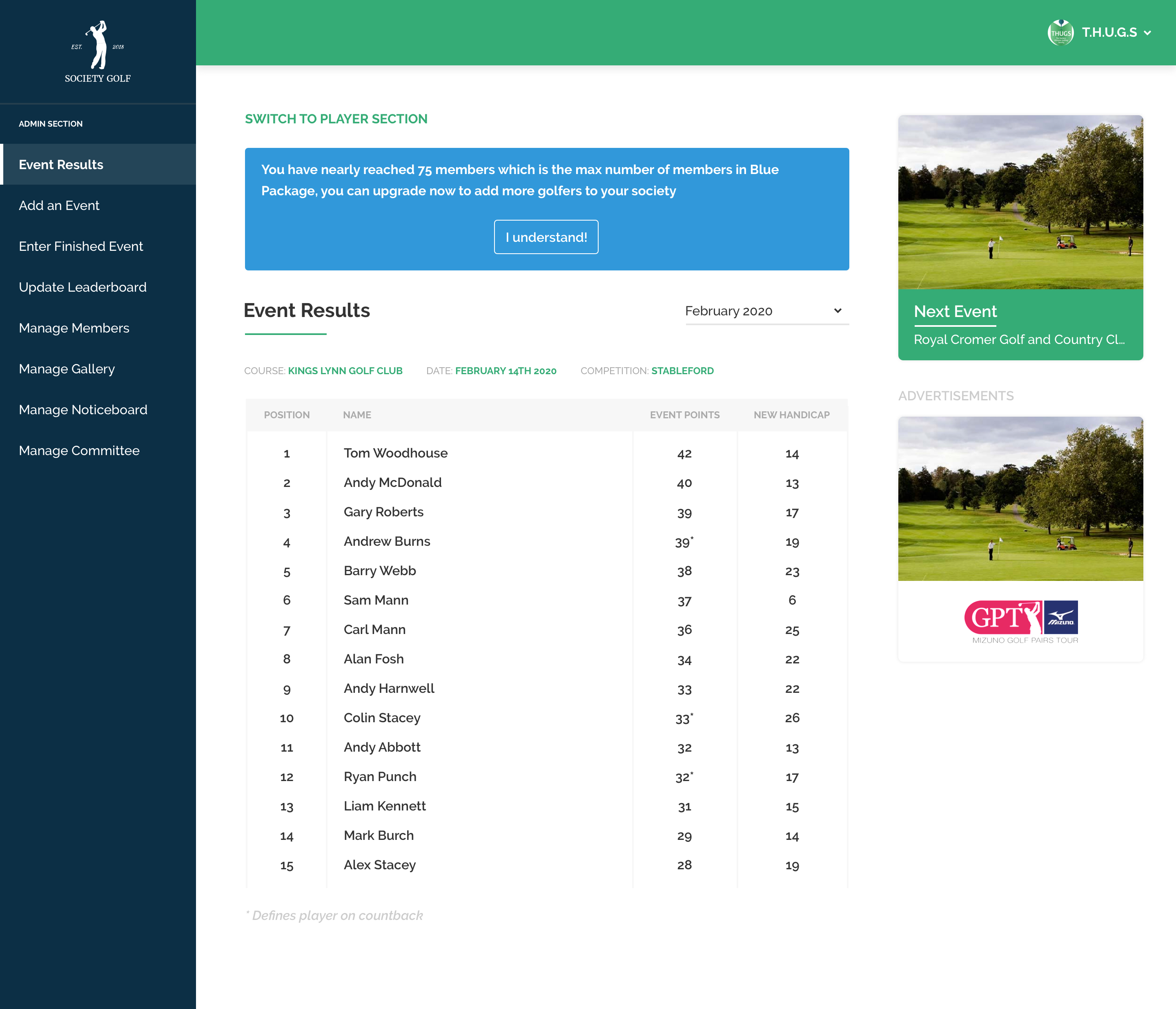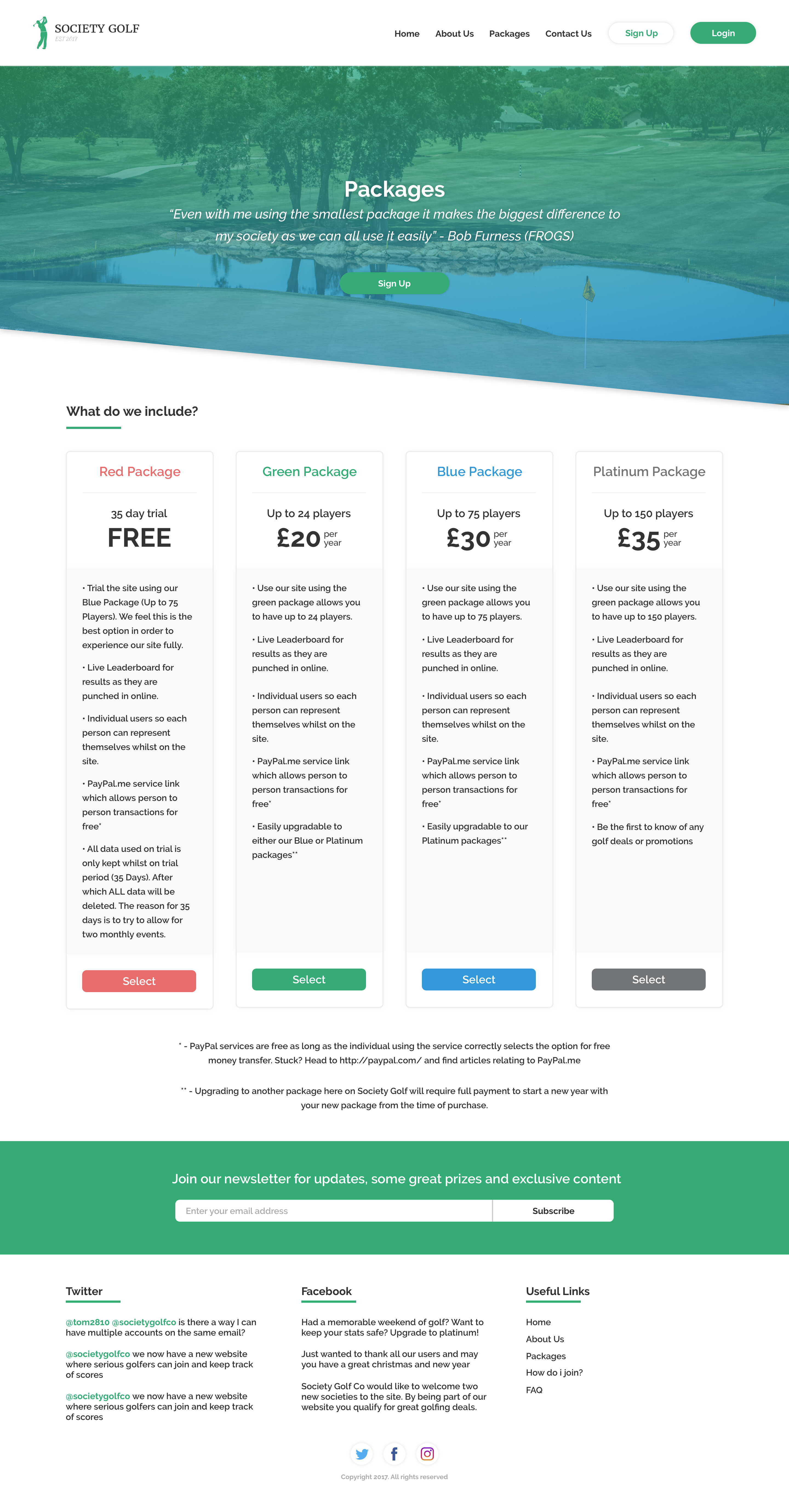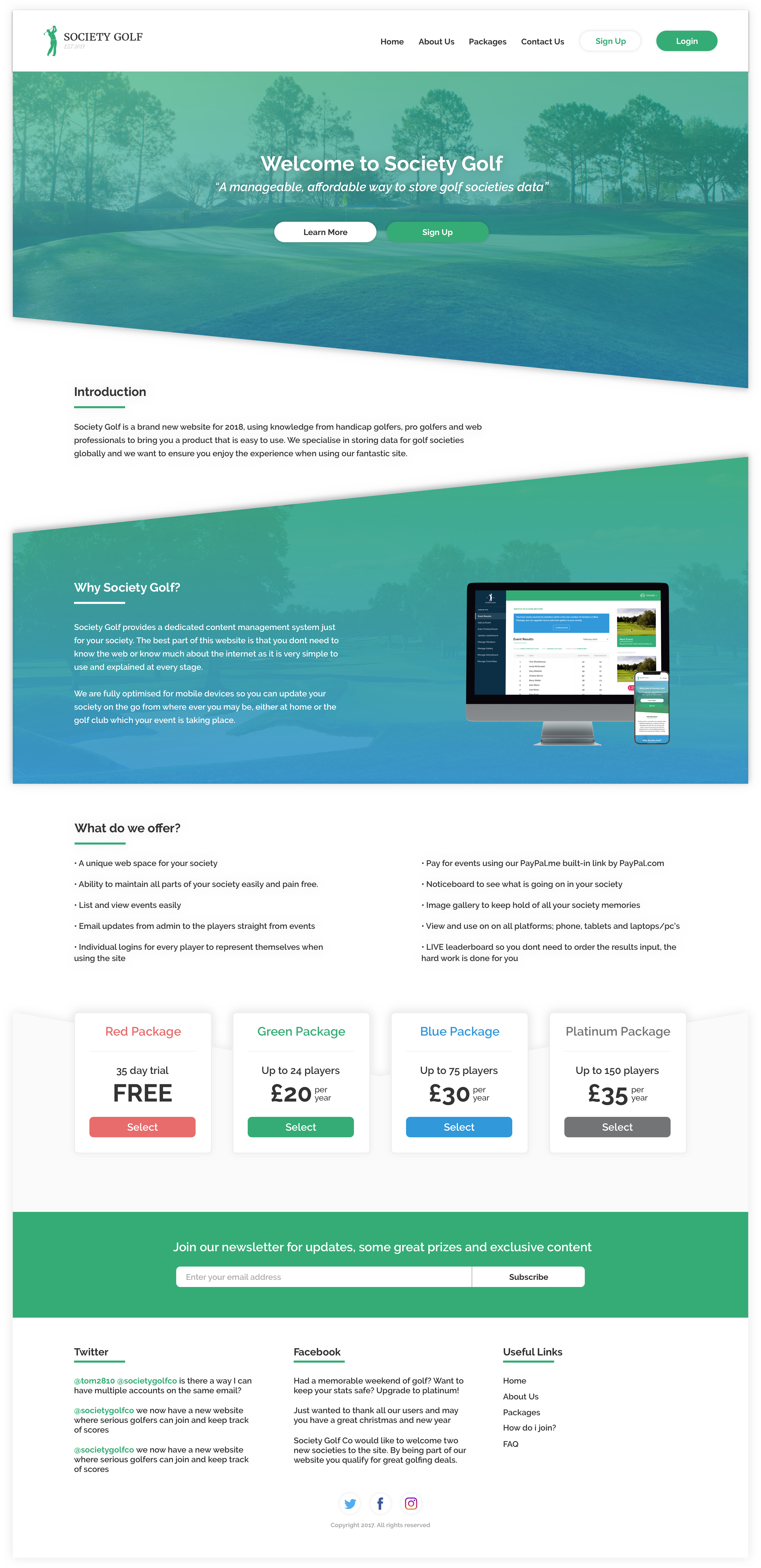 Society Golf is a society golf content management website. It was designed and developed with the thoughts that most golfers who play in golf societies are an older generation and may not be great with computers. Its for responsive web and offers a great way of using the product where ever you are as their goal is to allow poeple to input scores at the golf course as they arrive into the clubhouse whether they want to use their phone, tablet or their laptop.